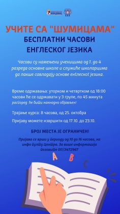 Program pod nazivom „Učite sa Šumicama“ organizuje besplatne časove engleskog jezika za učenike od 1. do 4. razreda osnovnih škola.