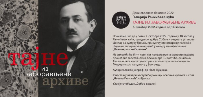 „Dani evropske baštine“ 2022. Galerija Rančićeva kuća „TAJNE IZ ZABORAVLjENE ARHIVE“